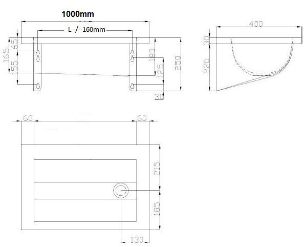 RVS 304 wasgoot 1000x400x180mm voor wandmontage met geïntegreerde consoles. Incl. 1,5" afvoerplug. Optie: kraangat. Bacteriostatisch RVS 304. Gesatineerde afwerking. Dikte RVS: 1 mm voor de kom en 1,5 mm voor de omtrek en de montagebeugels. Eenvoudig te plaatsen: RVS is minder zwaar dan andere materialen. Afloop links. Zonder kraangat. Geleverd met afvoer 1 1/2". Zonder overloop. Geleverd met montagebeugels en bevestigingen. CE keurmerk. Conform de norm EN 14296.