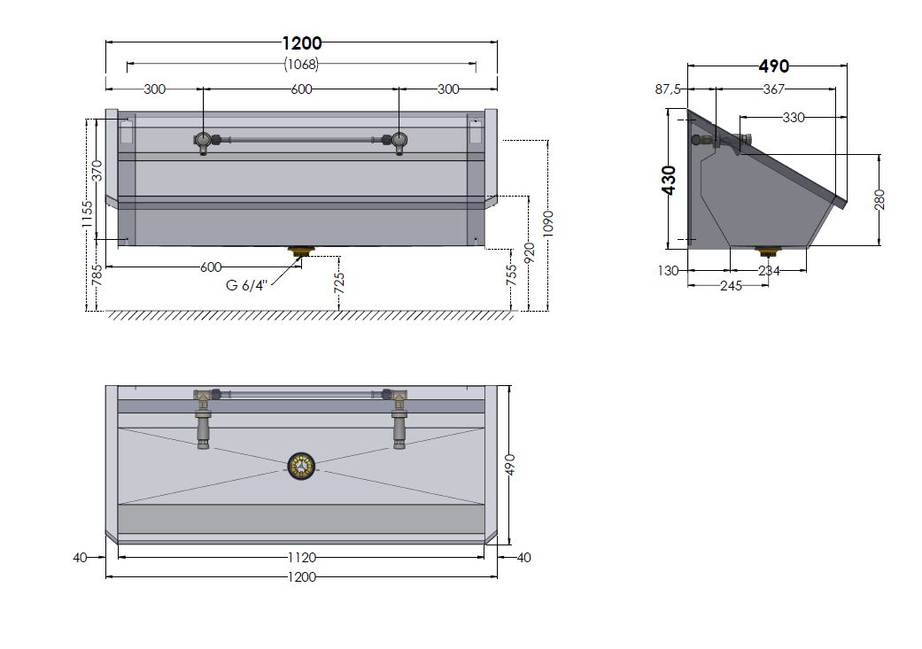 RVS Wastrog met 1 toevoerleiding voor koud of voorgemengd water met voorgemonteerde zelfsluitende kranen Incl. afvoerplug 6/4" Toevoer standaard rechts, optie: links. Leverbaar in de maten 1200, 1800, 2400, 3000mm voor resp. 2, 3, 4 of 5 personen