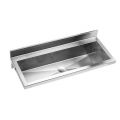 RVS Wastrog voor wandmontage 1,5" afvoerplug in het midden en consoles. Afm. ...x...mm. Uitvoering type B geschikt voor kranen op de wastrog, ...mm diep.