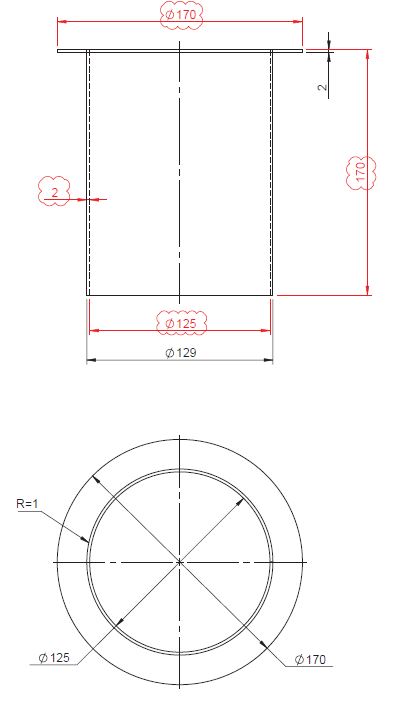 BAJ125170 RVS 304 stortkoker inw. 125mm H=170mm. doorvoer