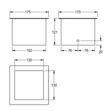 RODX607TT RVS afval koker voor montage in tafelblad / zonder afvalbak uitw 175x175x121mm - doorvoer vierkant