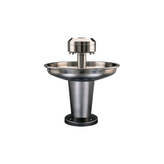 RVS 304 wasfontein 6 pl. diam. 1130mm, 6 kranen elektronisch (batterij) koud water SANISPRAY. Hoogte 850mm.