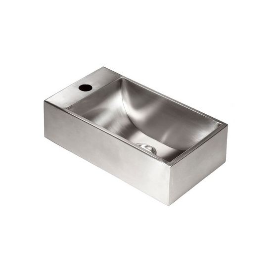 uitv. satin finish. Kraangat links of rechts. RVS wastafel geschikt voor kleinere ruimtes. Deze wastafel zonder overloop, wordt geleverd exclusief montagemateriaal.