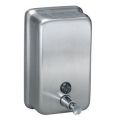 RVS Zeepdispenser voor wandmontage geschikt voor vloeibare zeep. Verticaal model afm. 122x208x73/137mm (incl. pompje). Inhoud: ca. 1 ltr. Het pompje is van verchroomd messing met een kunststof mechanisme.