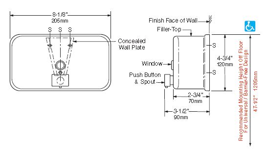B2112 RVS zeepdispenser horizontaal model 1,2 ltr