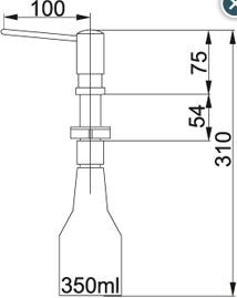 Verchroomde zeepdispenser voor bladmontage. Uitloop 100mm. Incl. 350ml.