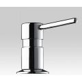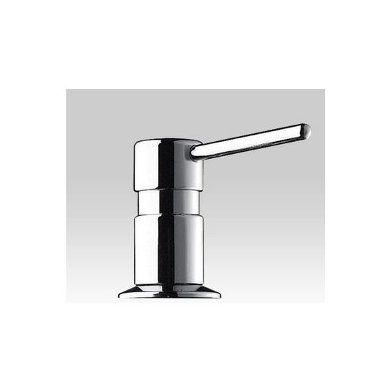 Verdeler voor vloeibare zeep op blad met rechte uitloop. Model voor installatie op wastafel. Vandaalbestendig model. Lichaam en drukknop in messing verchroomd. Anti-drup systeem (waterdicht). Mechanisme vergrendelbaar met inbusschroef. Vulbaar via bovenkant(d.m.v. losschroeven van de drukknop) of via de onderkant (d.m.v. losschroeven van het reservoir). Geleverd met een reservoir van 1 L.