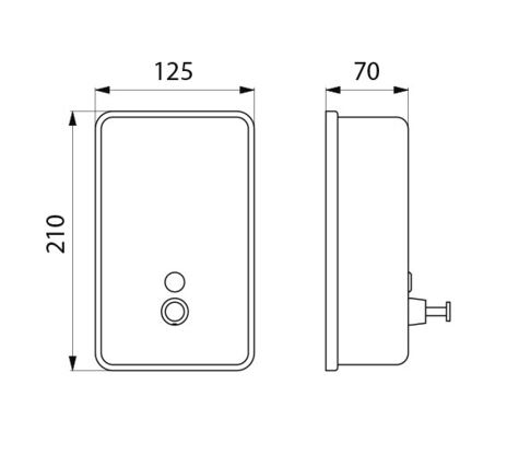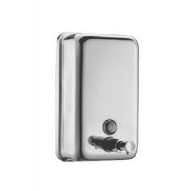 Zeepdispenser, muurmodel.Bacteriostatisch rvs 304, mat gepolijste uitvoering. Zeepverdeler met monoblok afdekplaat met slot.Inhoud: 1,2 liter.Venster voor niveaucontrole. Verborgen bevestigingen.Vulklep onderaan scharnierend. Afmetingen: 70 x 125 x 210 mm.