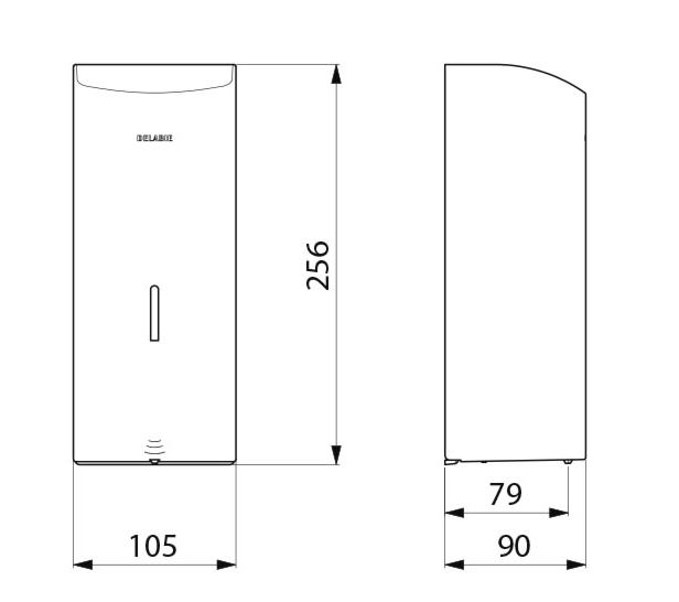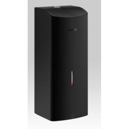 Elektronische verdeler voor vloeibare zeep, muurmodel. Verdeler voor vloeibare zeep of hydroalcoholische gel. Vandaalbestendig model met slot en standaard DELABIE sleutel. Geen manueel contact nodig: automatische detectie van de handen d.m.v. infrarood oog (detectieafstand is regelbaar). Afdekplaat in bacteriostatisch rvs 304. Uit één stuk gevormde afdekplaat, voor een gemakkelijk onderhoud en een betere hygiëne. Besparende doseerpomp: dosis van 0,8 ml (regelbaar tot 7 doses per detectie). Werking mogelijk in anti-verstopping modus. Automatische zeepverdeler: stroomtoevoer via 6 meegeleverde batterijen AA -1,5 V (DC9V) geïntegreerd in het lichaam van de zeepverdeler. Verklikkerlichtje geeft zwakke batterij aan. Reservoir met brede opening: gemakkelijk te vullen d.m.v. grote bidons. Venster voor niveaucontrole. Uitvoering in mat zwart rvs 304. Dikte rvs: 1 mm. Inhoud: 1 liter. Afmetingen: 90 x 105 x 256 mm. Voor vloeibare plantaardige zeep met maximale viscositeit: 3 000 mPa.s. Compatibel met hydro-alcoholische gel.